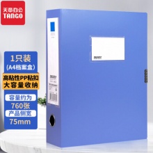 天章办公(TANGO)A4/75mmPP粘扣档案盒/加厚文件盒/财务凭证收纳盒资料盒/单只装/蓝色