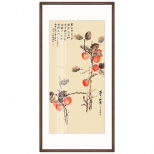 萱木堂张大千新中式玄关装饰画走廊过道书房茶室挂画餐厅饭厅壁画 事事如意(胡桃木圆角框) 成品宽60cm*高120cm