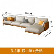 依红霖 北欧轻奢科技布免洗可拆洗客厅整装三人位组合乳胶羽绒现代简约小户型布艺沙发 3.2米/双+单+贵妃 德国纳米科技布【高密度海绵+进口松木】