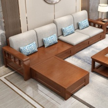 柒岚 实木沙发客厅中式现代简约小户型冬夏两用布艺沙发储物客厅整装家具组合 框架款 三人位