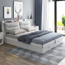 木月 床 北欧简约双人床高箱储物床布艺软靠床婚床 雅致 【象牙白】高箱床 2*2.2米
