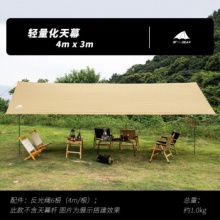 三峰出三峰天幕野餐露营大防晒防水防雨帐篷户外多人防雨遮阳棚野营超大凉棚 4X3卡其涂银+风绳【不带杆】
