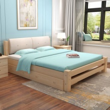 帝灏北欧实木床单人双人床布艺可拆洗软包床现代简约床松木家具出租屋 清漆裸床+太空灰软包+1个床头柜送5cm3E硬棕垫 1.5米*2米