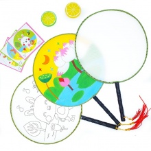 刺锈圆形框(13cm)空白圆扇子儿童绘画扇团扇宫扇折扇手绘diy