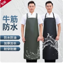 牛筋PU皮围裙防水防油女餐饮食堂厨房水产专用围腰工作服男加长款