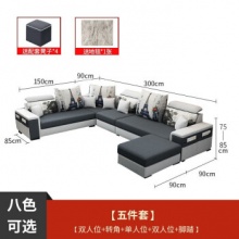 奢弥(SHEMI) 布艺沙发 客厅沙发简约现代小户型科技布沙发乳胶免洗可拆洗整装组合实木家具乳胶功能 大户型五件套U型 旗舰棉麻-海绵版【颜色备注】