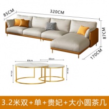 依红霖 北欧轻奢科技布免洗可拆洗客厅整装三人位组合乳胶羽绒现代简约小户型布艺沙发 3.2米/双+单+贵妃+大小圆茶几 德国纳米科技布【高密度海绵+进口松木】