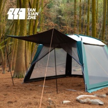 探险者(TAN XIAN ZHE) 户外天幕凉棚露营8-10人烧烤遮阳棚便携式大天幕防虫帐篷 墨绿色【可全封闭】