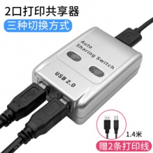usb分线打印机接口共享器转换器两台共用一分二自动切换器2口1拖2分线器免切换分配器一拖二