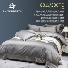 La Torretta 长绒棉四件套纯棉 A类60支贡缎刺绣纯色酒店床上四件套全棉床单被套 卡宾灰 1.5/1.8米床通用