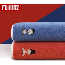 九洲鹿 毛巾 2条装 家用超强吸水不掉毛 红+蓝 35*75cm