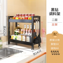 厨房置物架调料架台面调味品收纳架子筷子笼刀架家居厨具多功能厨具架 黑钻调料架2层【长30cm+4挂钩】 朝暮之家