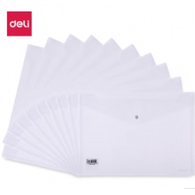 得力(deli)8308 A4 透明按扣文件袋白色 10只装