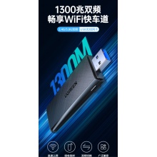 绿联 USB无线网卡 AC1300M双频 免驱动 适用台式机笔记本电脑随身无线WiFi接收器 外置5G千兆高速网卡