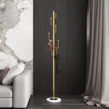 冠羽家居意式轻奢衣架挂衣架落地卧室网红门口家用简易衣服挂架玄关衣服架不锈钢大理石衣帽架 不锈钢金色支架+白色大理石