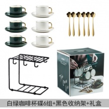 咖啡杯欧式小奢华套装 白+绿-6杯碟(礼盒套装)