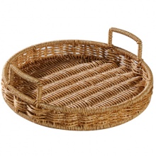 仿藤编织扁 圆形30*30*7/11cm双耳棕色