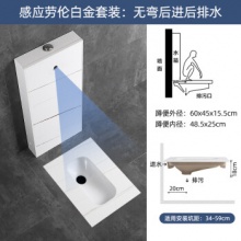 吉爵超薄岩板蹲便器自动感应水箱整套装防臭大便器蹲坑式陶瓷蹲厕公用灰色黑色家用带存水弯防臭蹲坑陶瓷便池 A11劳伦白金无弯后进后排水套装