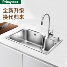 普乐美304不锈钢大单槽加厚水槽洗碗池大容量单槽洗菜盆 【单槽】68*47cm(配不锈钢大弯龙头)