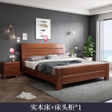 南宜 床实木床金丝胡桃木实木高箱储物现代双人大小户型木质家具卧室大床婚床卧室家具 【普通款】实木床+1床头柜 【农村橡胶木款】1.8*2.0米