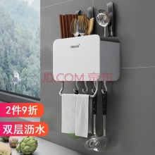 卡三 免打孔壁挂式筷子筒家用菜刀架沥水架厨房置物架筷子笼餐具勺子收纳架挂钩毛巾厨房用品 灰色