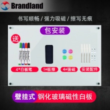 brandland磁性钢化玻璃白板挂式玻璃写字板黑板办公会议50*70