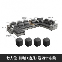 亲友 布艺沙发组合套装简约客厅整装家具大小户型现代纳米科技布可拆洗实木乳胶USB充电多功能沙发 七人位+脚踏+边几【配四个布凳】 旗舰海绵座包【颜色备注】
