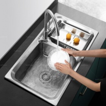 华帝(vatti)304不锈钢水槽双槽 拉丝不锈钢洗菜盆 厨房水槽 厨房洗碗盆091203(750*400*205)