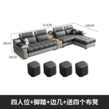亲友 布艺沙发组合套装简约客厅整装家具大小户型现代纳米科技布可拆洗实木乳胶USB充电多功能沙发 四人位+脚踏+边几【配四个布凳】 升级乳胶弹簧座包【颜色备注】