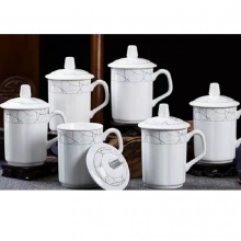 景德镇带盖陶瓷马克杯会议室用杯(单个装)