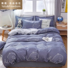 雅鹿自由自在 四件套亲肤 床上用品双人春秋4件套装被套被罩200*230cm床单枕套1.5/1.8米床 深海蓝鲸