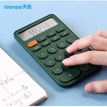 天色 糖果色简约计算器 12位大屏时尚桌面计算机平板便携 办公用品 TS-1721 竹青绿