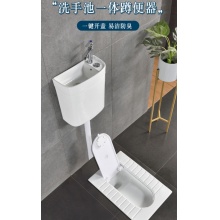 家用带盖板蹲便器大号带盖蹲便池隐藏式蹲坑式陶瓷洗手盆龙头马桶一体冲水箱蹲厕带S存水弯大便池套装 陶瓷水箱+直排后排水+带盖蹲便器