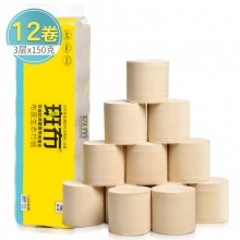 斑布(BABO) 本色卫生纸 竹纤维无漂白 BASE系列3层150g无芯卷纸*12卷