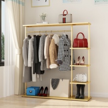 力洲 落地衣架卧室内立式挂衣架子衣服展示架服装店衣帽架房间收纳架置物架金色 带顶板 120cm金色