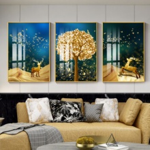 丞思 客厅装饰画现代简约餐厅玄关高端轻奢沙发背景墙壁 挂画 福鹿双至 45*60cm摩登黑(铝合金外框+晶瓷画面)