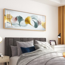 纪恒暄 卧室装饰画床头画高档轻奢晶瓷画现代简约大气主卧房间挂画北欧风格客厅背景墙壁画免打孔墙面上墙画 H10-银杏芳华-金色框 120*40cm(高清晶瓷画)