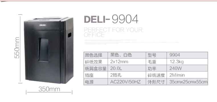 商品名称:得力(deli)企业定制9904德国5级保密碎纸机