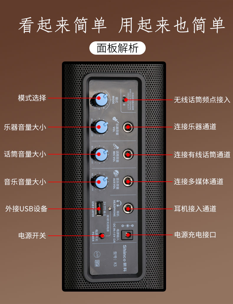 新科K5 广场舞音响乐器音箱户外音响大功率蓝牙K歌播放器