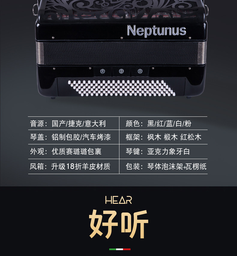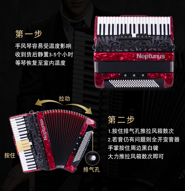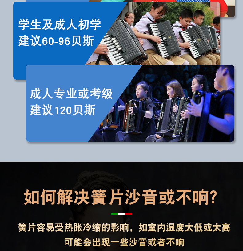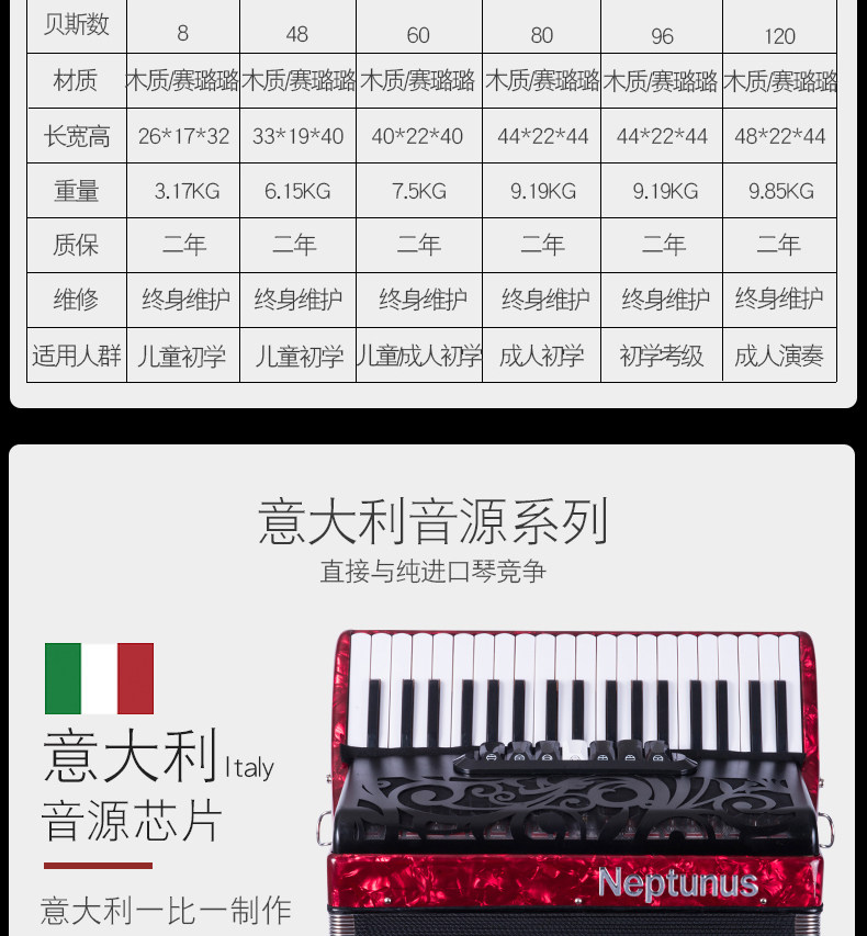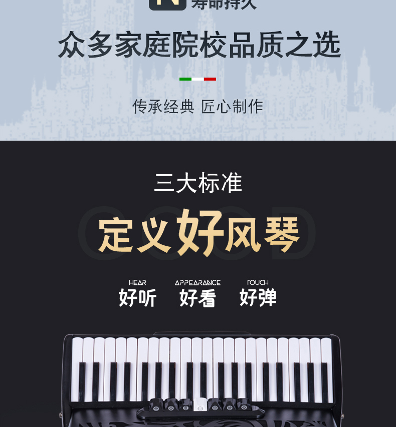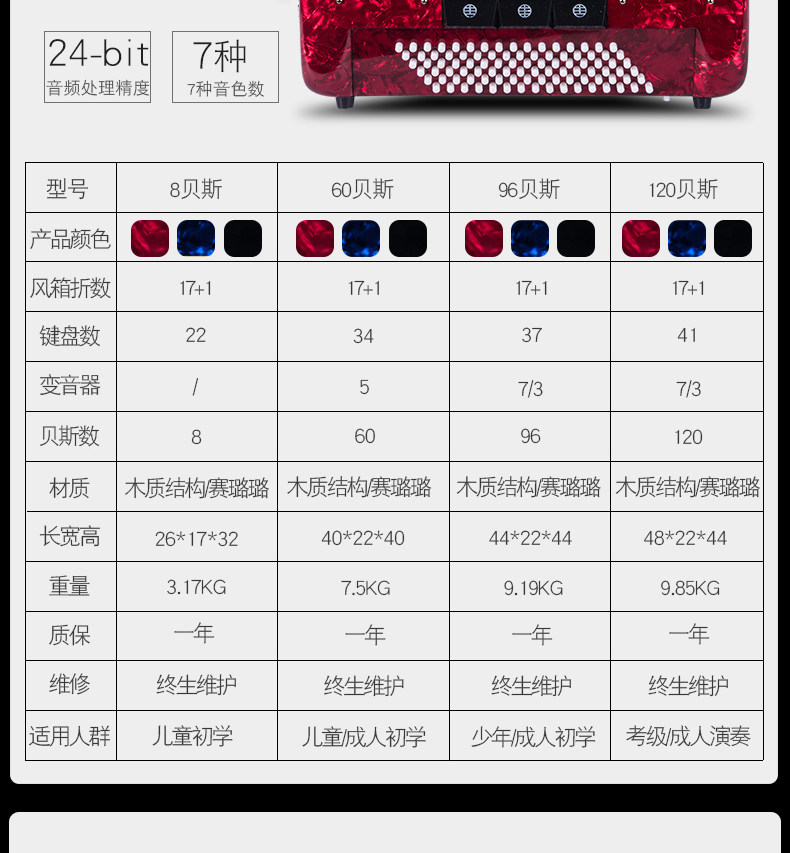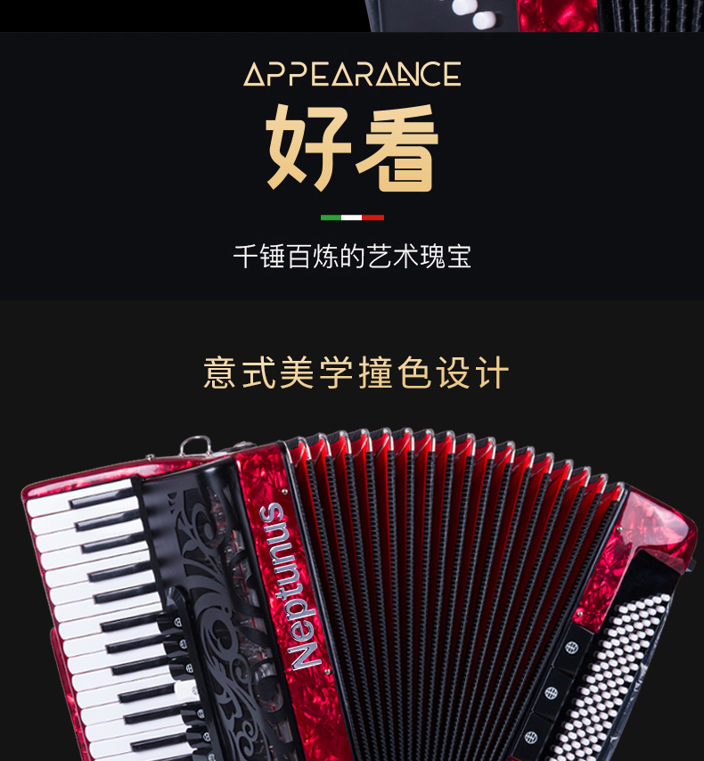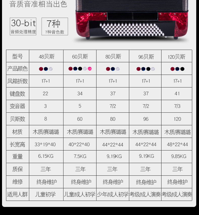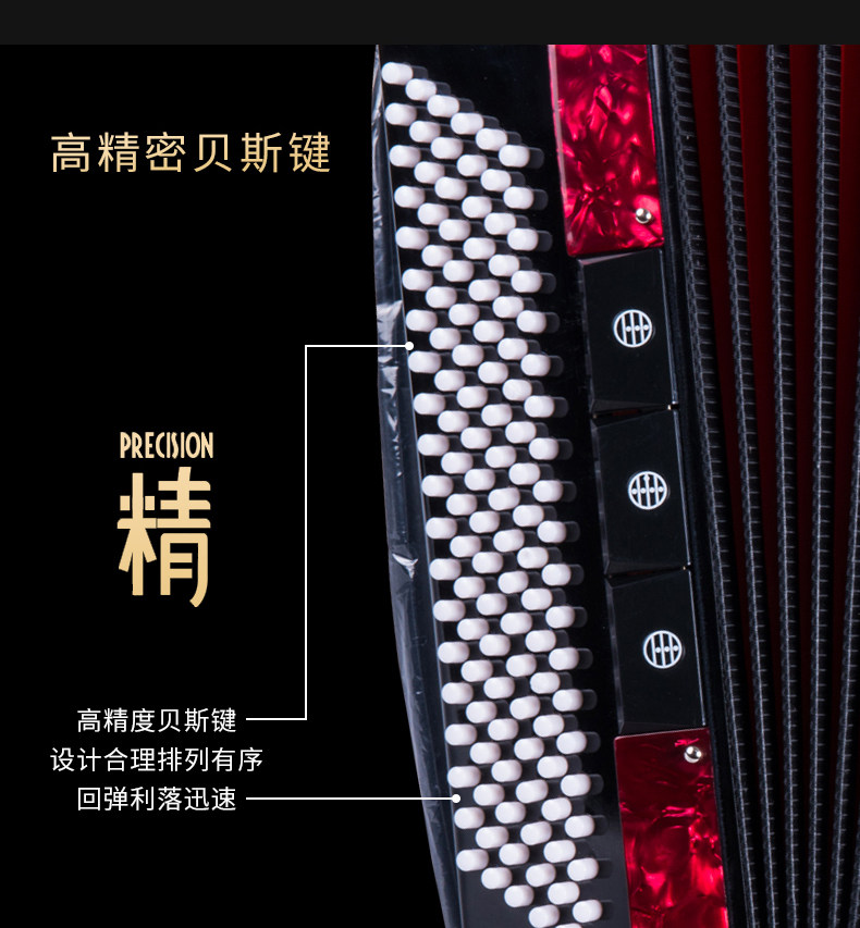 商品名称:美国手风琴60贝斯8贝司三排簧成人儿童初学入门专业演奏乐器