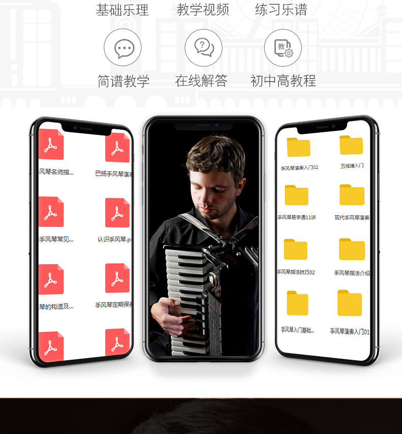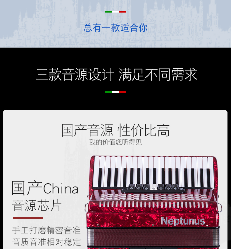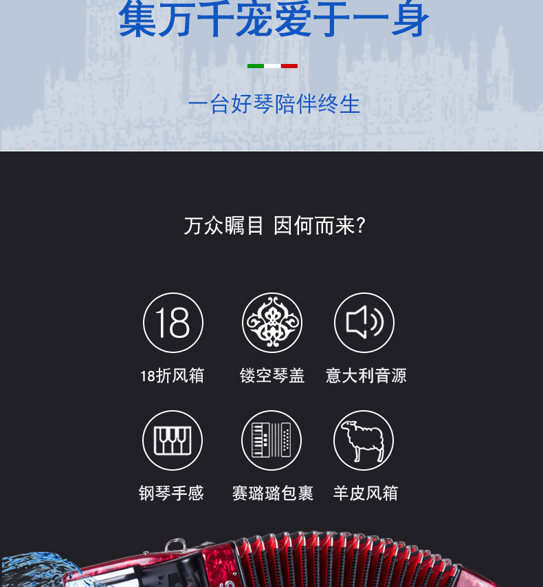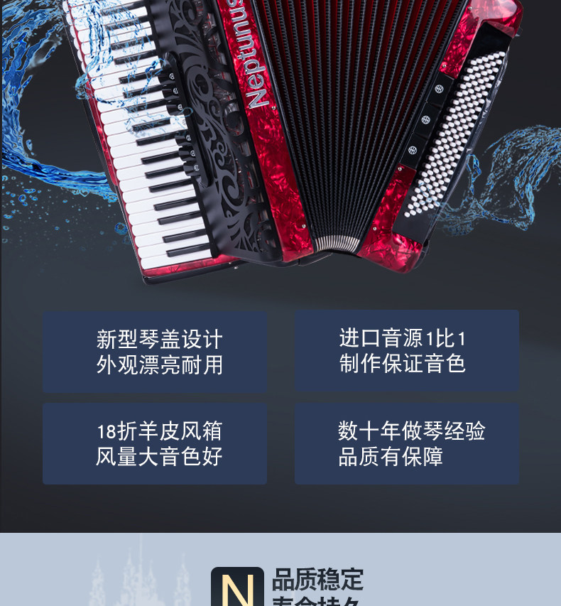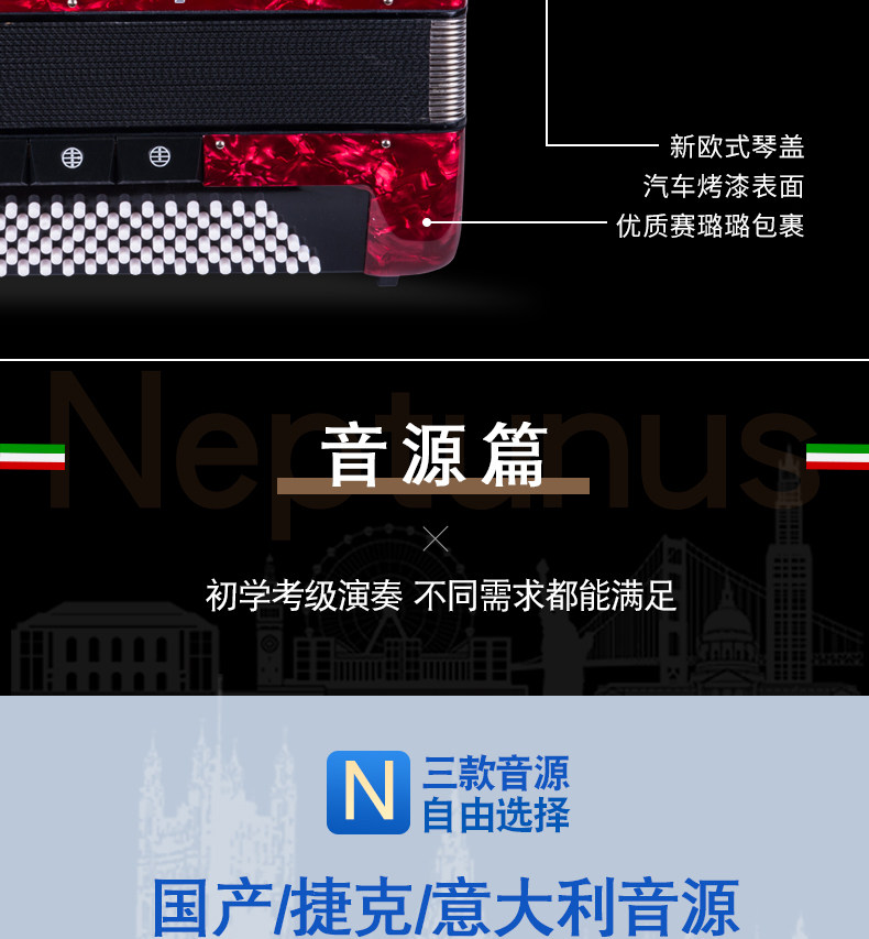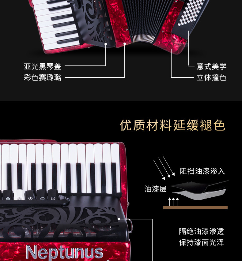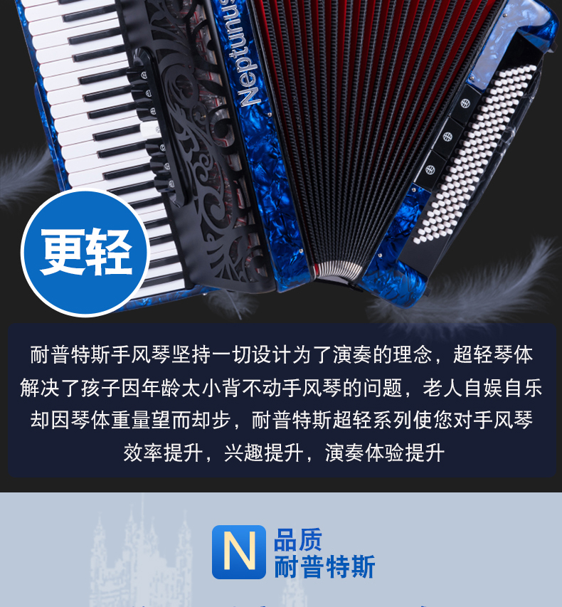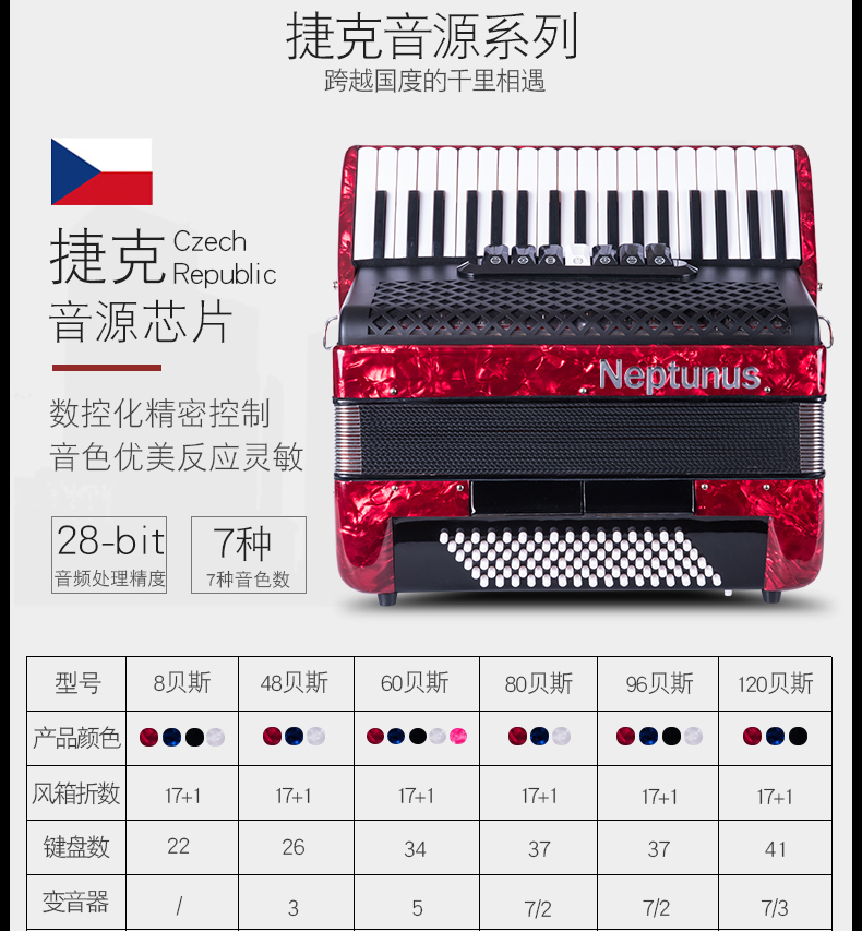 商品名称:美国手风琴60贝斯8贝司三排簧成人儿童初学入门专业演奏乐器