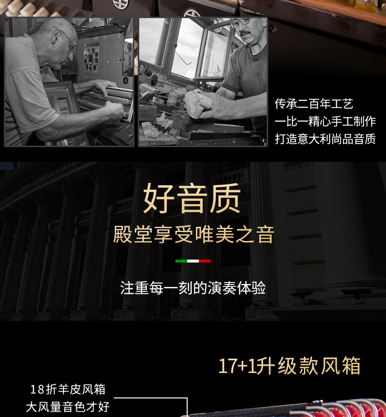 美国手风琴60贝斯8贝司三排簧成人儿童初学入门专业演奏乐器