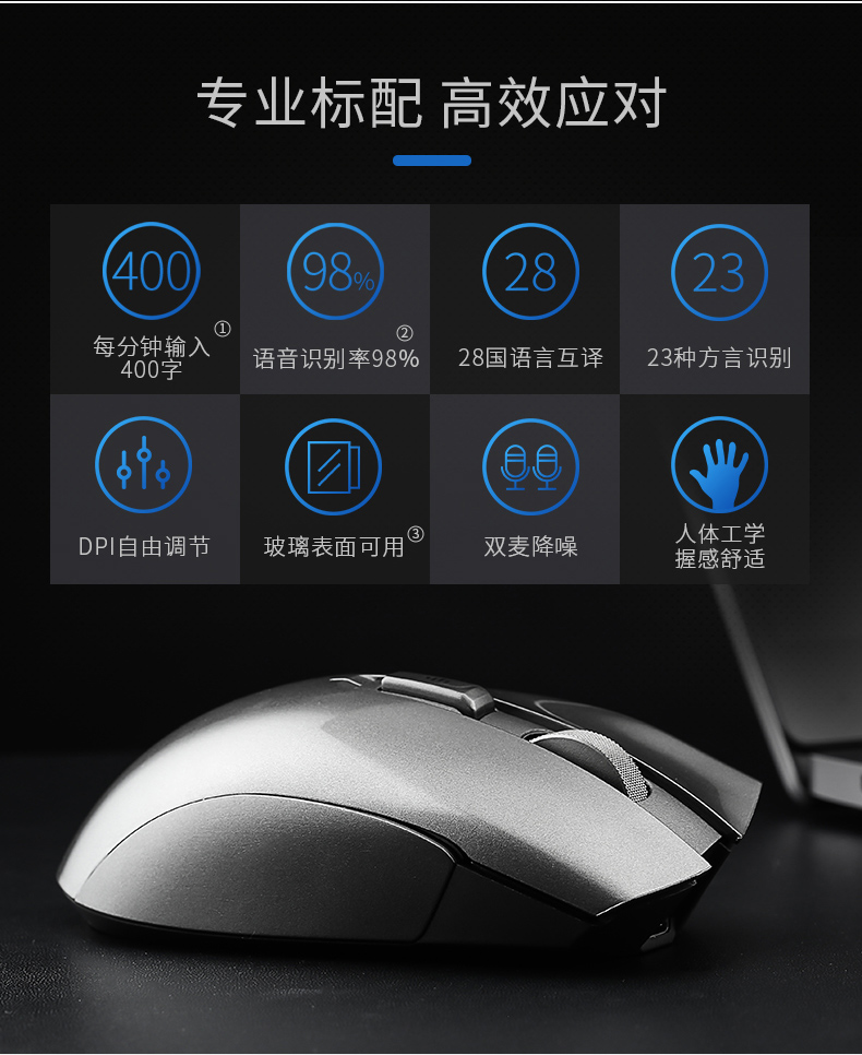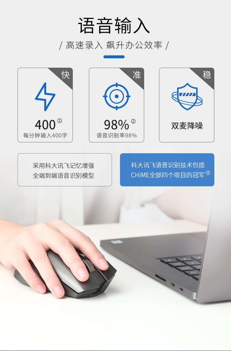 科大讯飞智能语音鼠标Pro无线蓝牙AI声控打字静音