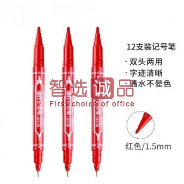 齐心 MK804-X 小双头记号笔 0.5-1.5mm 红 12支装