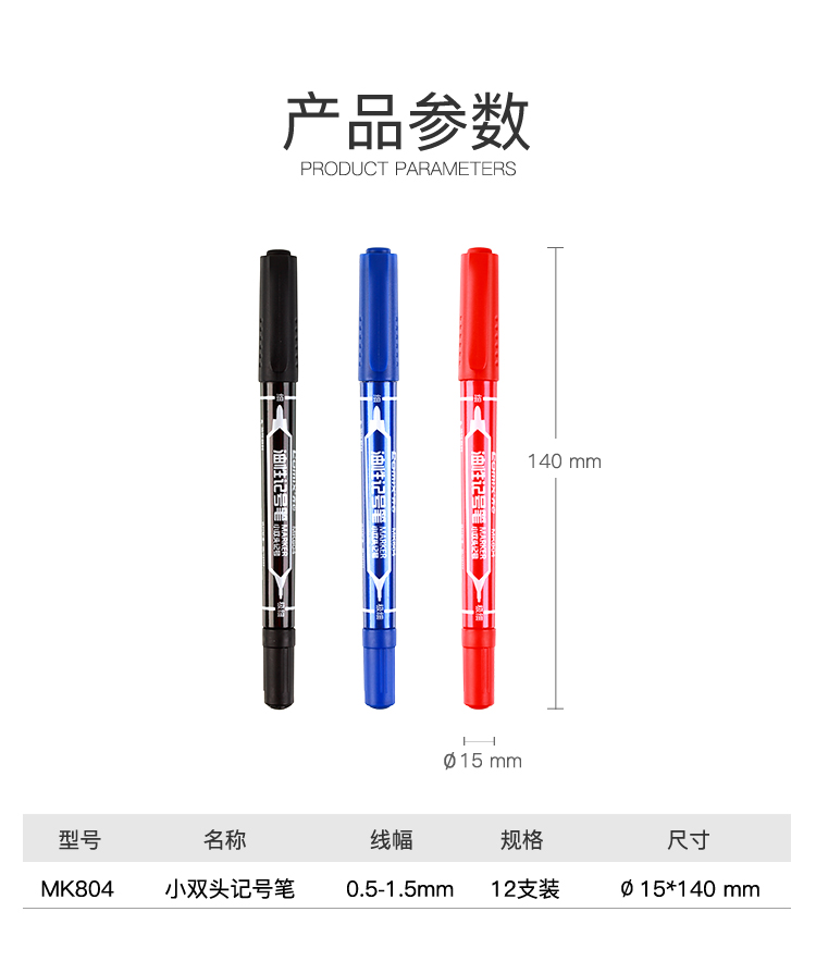 商品名称:齐心 MK804-X 小双头记号笔 0.5-1.5mm 红 12支装