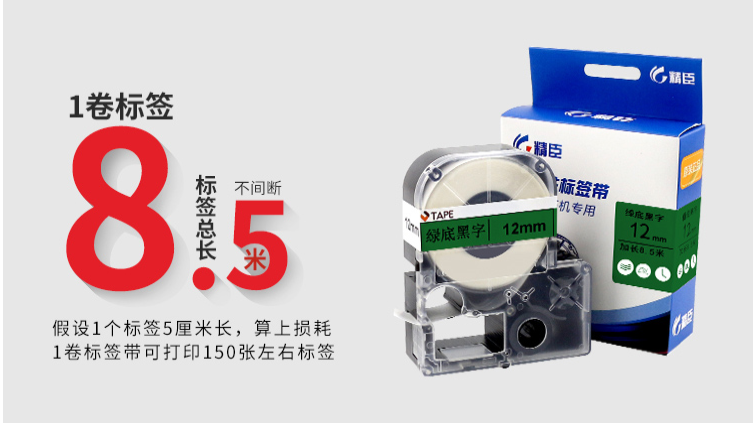 商品名称:精臣 12mm绿底黑字 JC114标签打印机色带不干胶标签纸标签带