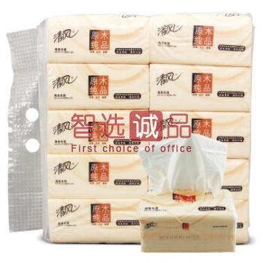 商品名称:清风抽纸纸巾双层盒装面巾纸餐巾纸150抽/包*10包BR38A6 1箱(60包)
