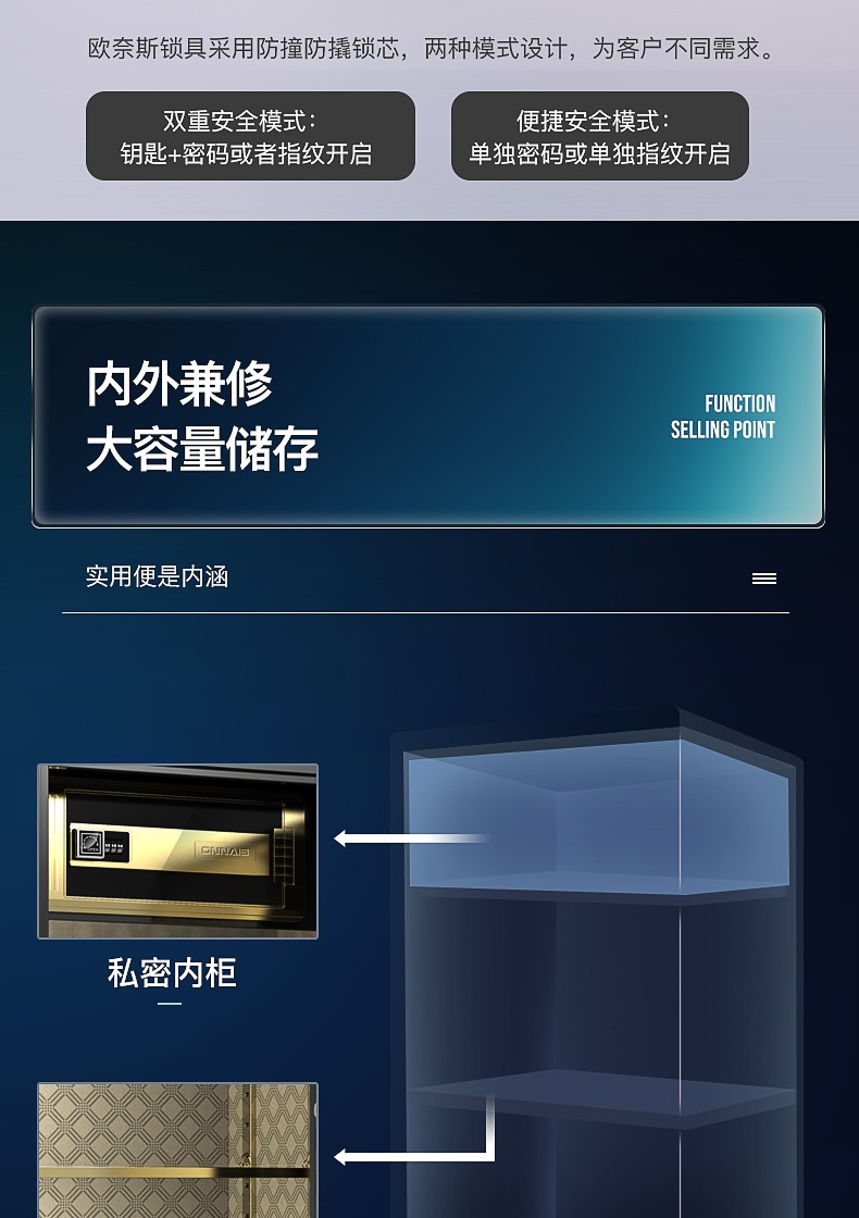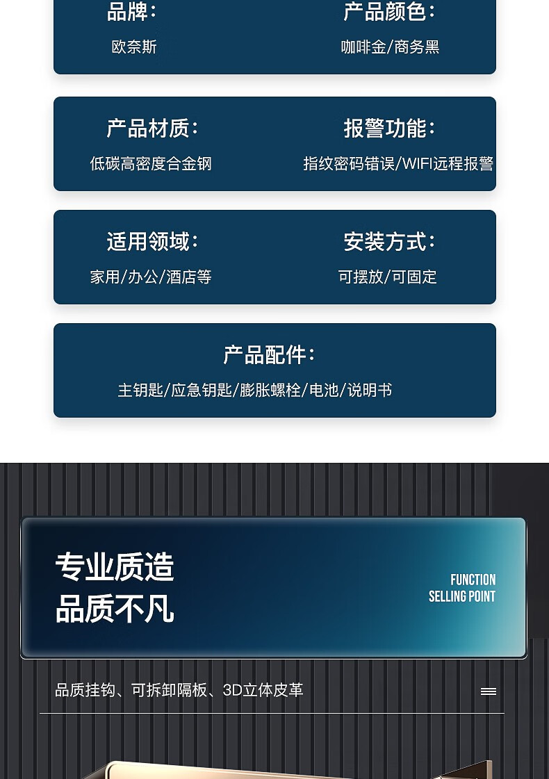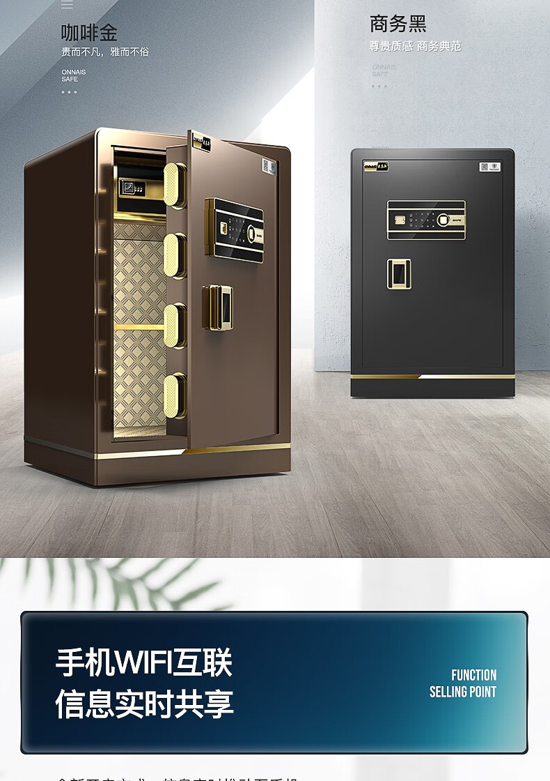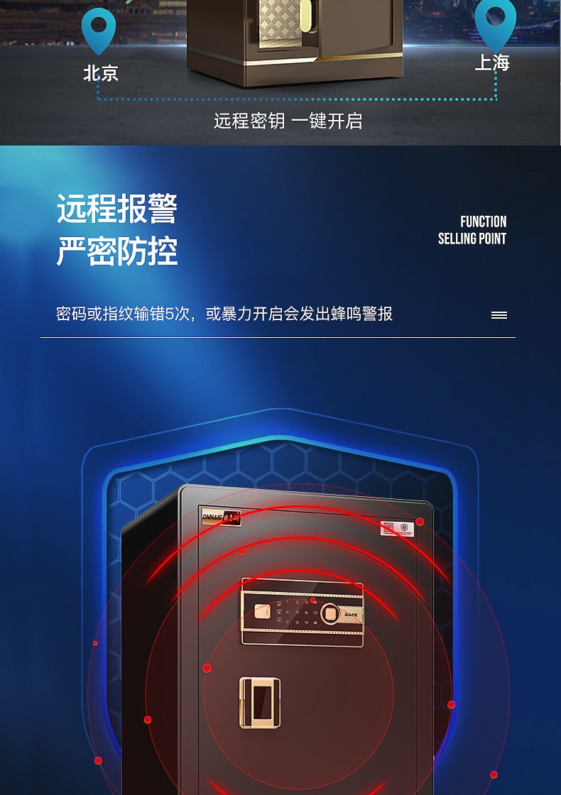 欧奈斯(ONNAIS)保险柜家用办公60cm小型指纹密码全钢双重报警防盗入墙保险箱 60cm尊贵黑密码-三层款