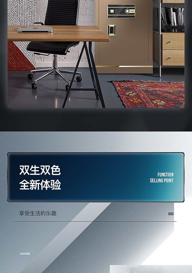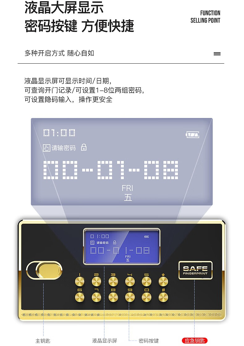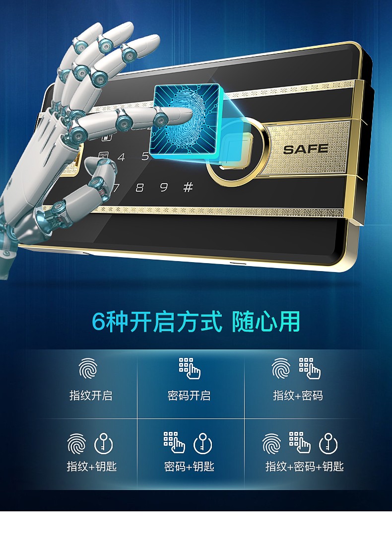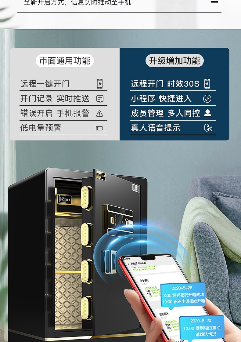 欧奈斯(ONNAIS)保险柜家用办公60cm小型指纹密码全钢双重报警防盗入墙保险箱 60cm尊贵黑密码-三层款