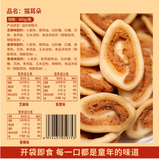 商品名称:比比赞猫耳朵混合味400g怀旧吃货零食小吃猫耳酥网红爆款大礼包整箱休闲食品